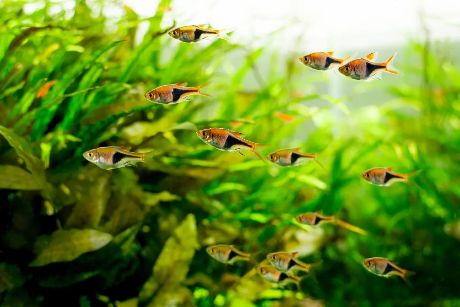 Harlequin rasboras do best in a planted aquarium that mimics slow-moving Southeast Asian streams with soft lighting and stable water parameters. Provide plenty of midwater swimming space, floating plants to soften light, and a peaceful community to reduce stress. Consistent maintenance and gentle filtration keep them comfortable and showing their best colors.